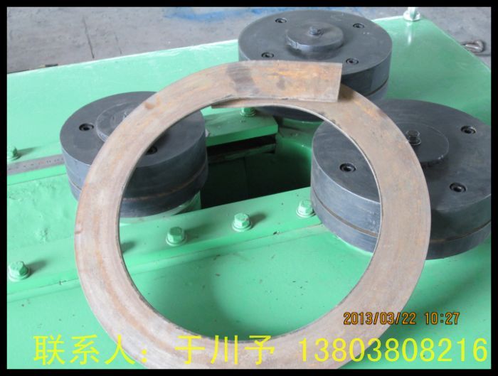該機適合卷制各種小口徑法蘭,可以一次連續(xù)成型成彈簧狀,適合于加工電機擋圈法蘭,管道法蘭等。