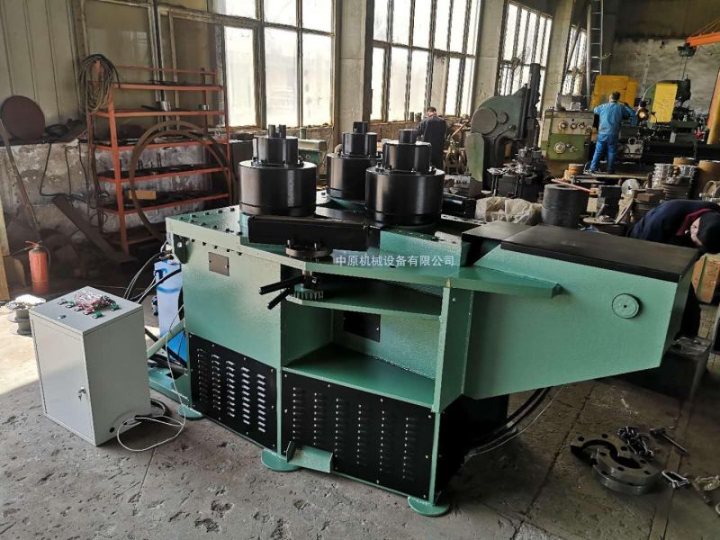 床身為一封閉式框架結(jié)構(gòu),驅(qū)動(dòng)兩輥位置固定,可以進(jìn)行正反方向旋轉(zhuǎn),油缸推進(jìn)??汕昂笠苿?dòng),兩固定模的轉(zhuǎn)動(dòng)為液壓傳動(dòng)、由液壓馬達(dá)驅(qū)動(dòng)。推進(jìn)模由液壓油缸的伸縮來完成。傳動(dòng)平穩(wěn)、安全可靠;在固定模的兩側(cè)設(shè)有托輥裝置,托輥既可以做升降運(yùn)動(dòng),也可以做旋轉(zhuǎn)運(yùn)動(dòng)。配合模具與導(dǎo)向輪同時(shí)作用有利于控制型材的卷制精度。
